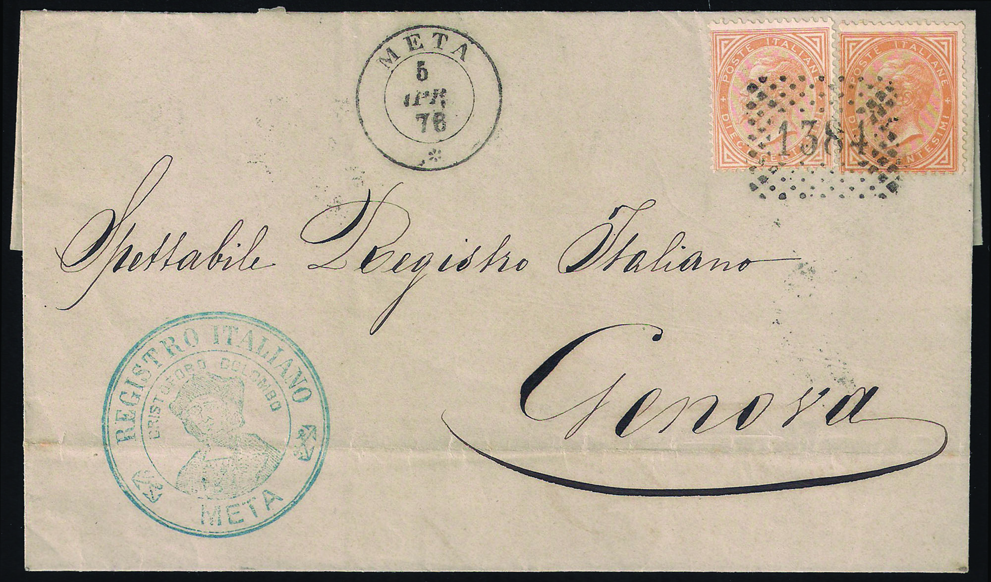 Tiratura di Torino in tinte annullati con nitido numerale a punti 1384 su lettera da META 8 apr.76 A Genova