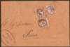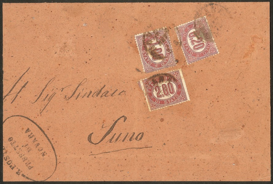 Regno - Vittorio Emanuele II - Servizio - Frammento affrancato per 3,20 lire composto da 20 cent + 1 lira + 2 lire (3 + 5 + 6)