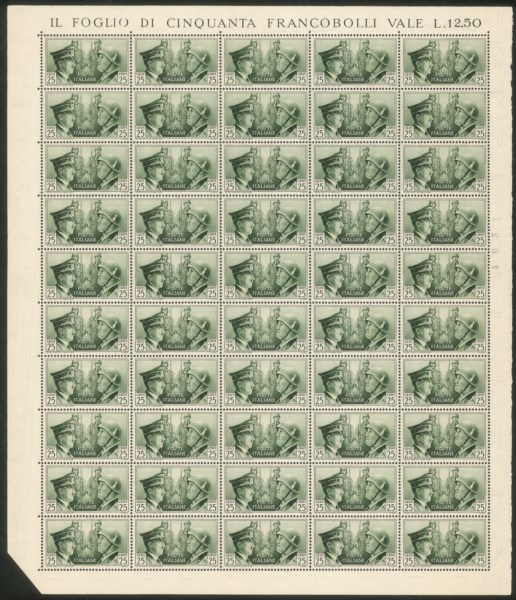 Regno - Vittorio Emanuele III - 1941 - Splendida serie completa Non Emessi Fratellanza d'Armi (457A/457C) in fogli di 50 esemplari