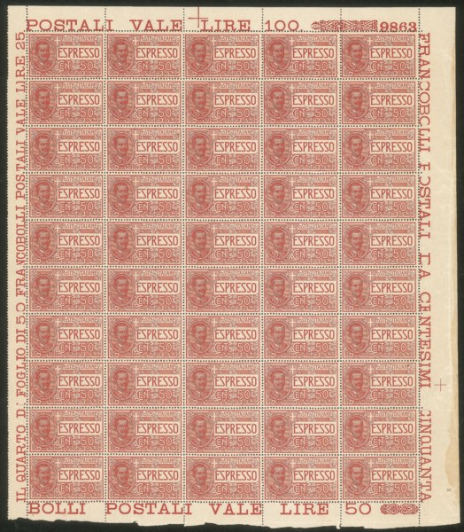 Regno - Espressi - 1920 - Bellissimo foglio di 50 esemplari del 50 cent Espresso (4)