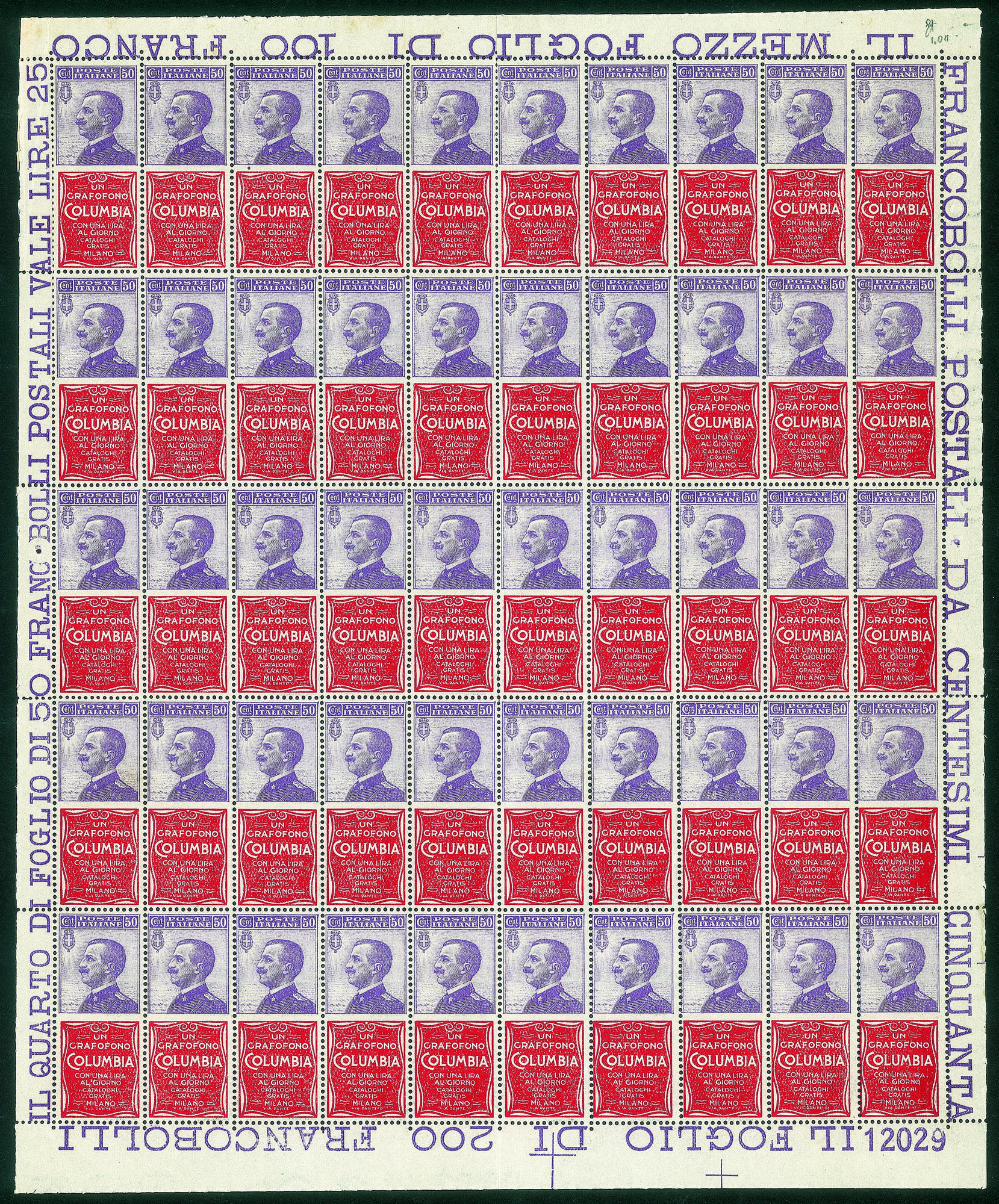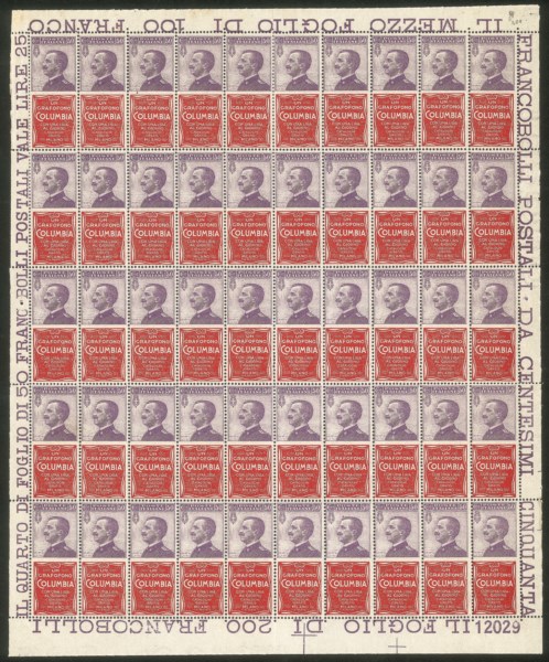 Regno - Francobolli pubblicitari - 1924 - Bellissimo foglio di 50 esemplari del 50 cent Colombia (11)