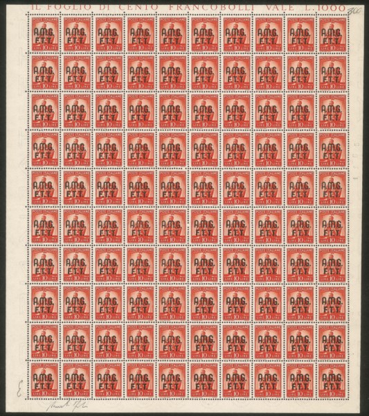 Trieste - Trieste AMG FTT - 1948 - Bellissimo foglio di 100 esemplari del 10 lire Democratica (11)