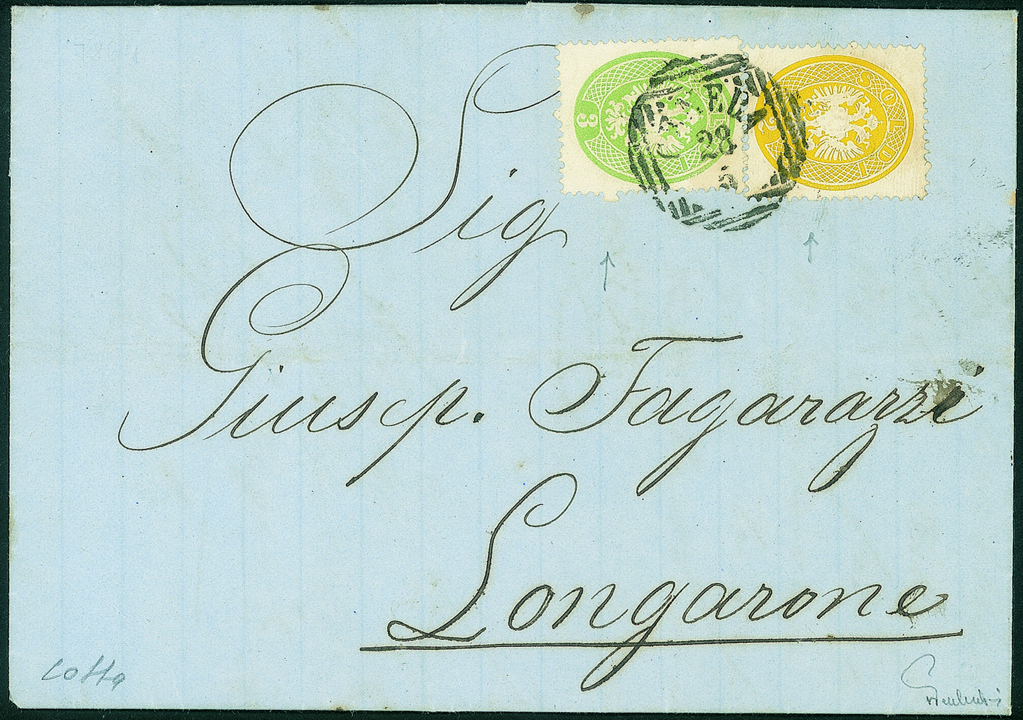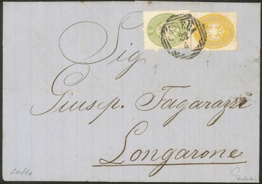 Antichi Stati Italiani - Lombardo Veneto - Fresca lettera affrancata con 2 soldi + 3 soldi (36 + 37)