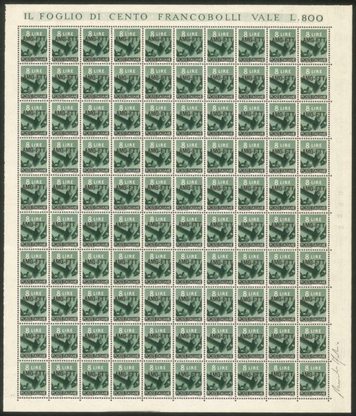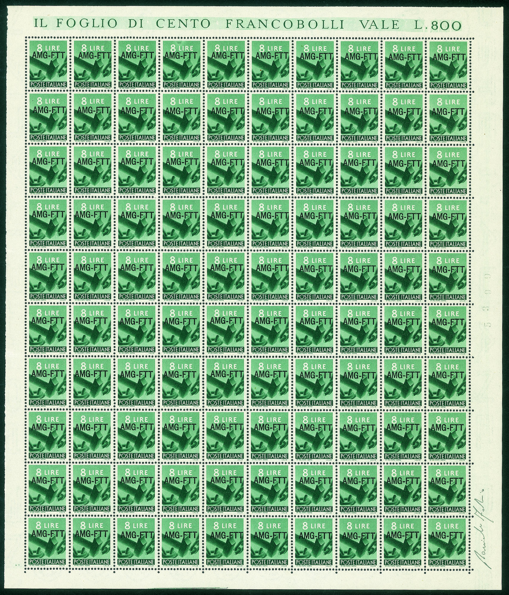 Trieste - Trieste AMG FTT - 1949 - Splendido foglio di 100 esemplari del 8 lire Democratica (61)