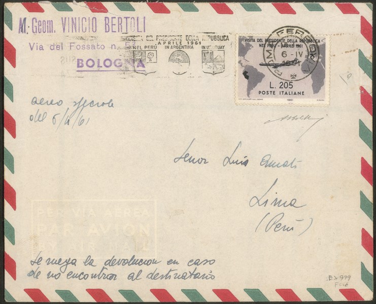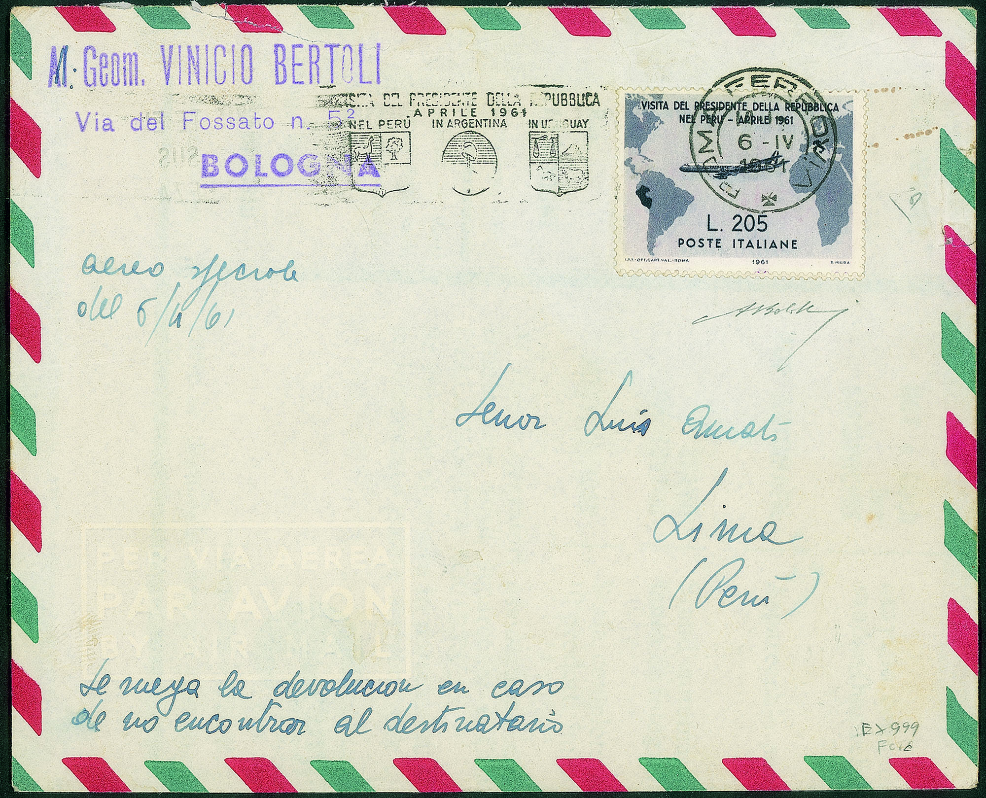 Italia - Repubblica - Aerogramma affrancato con Gronchi Rosa ricoperto dal lilla (920/921)