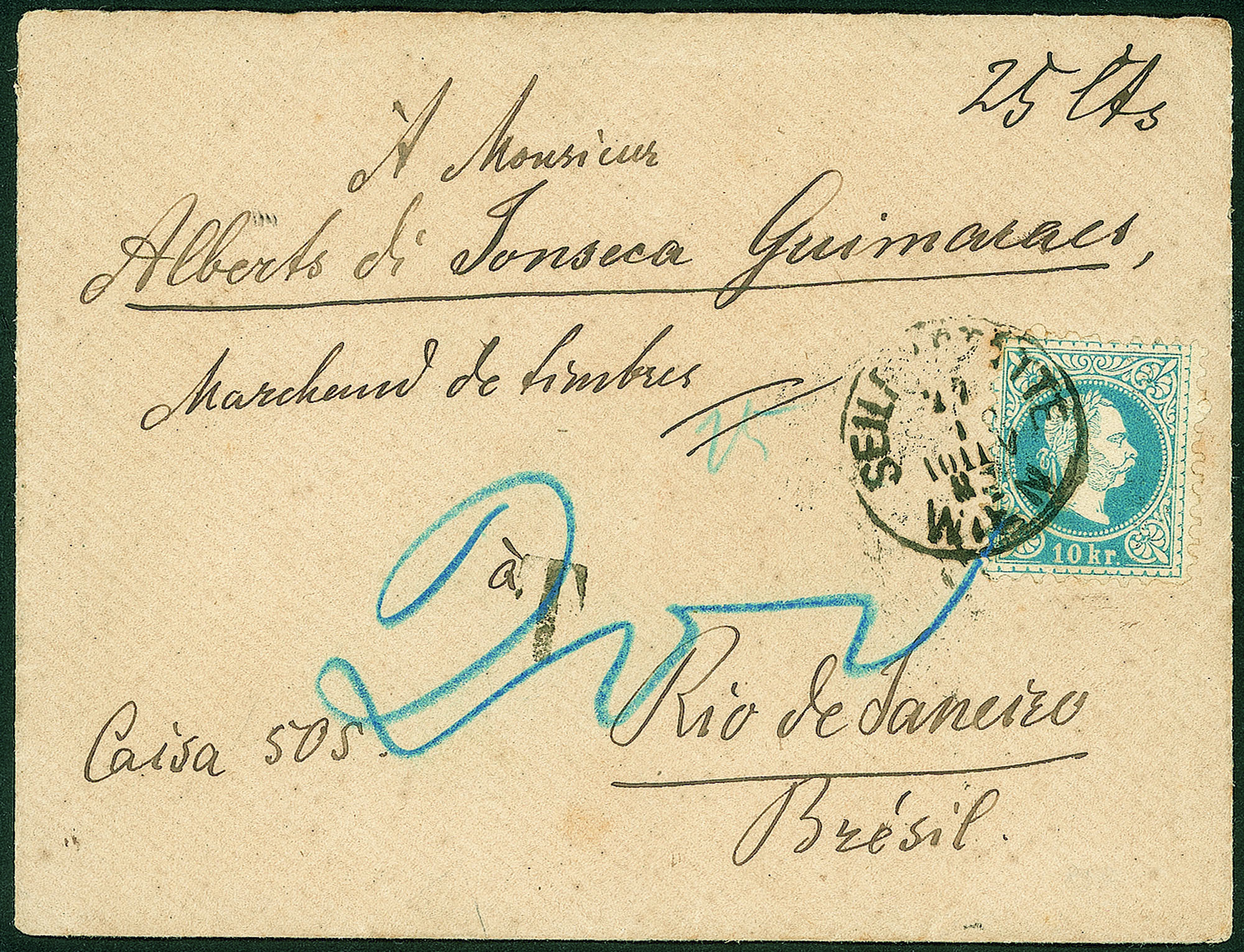Da Vienna per Rio de Janeiro (Brasile) del 27.1.1882 - tassata per 25 cent - bella destinazione per l'epoca