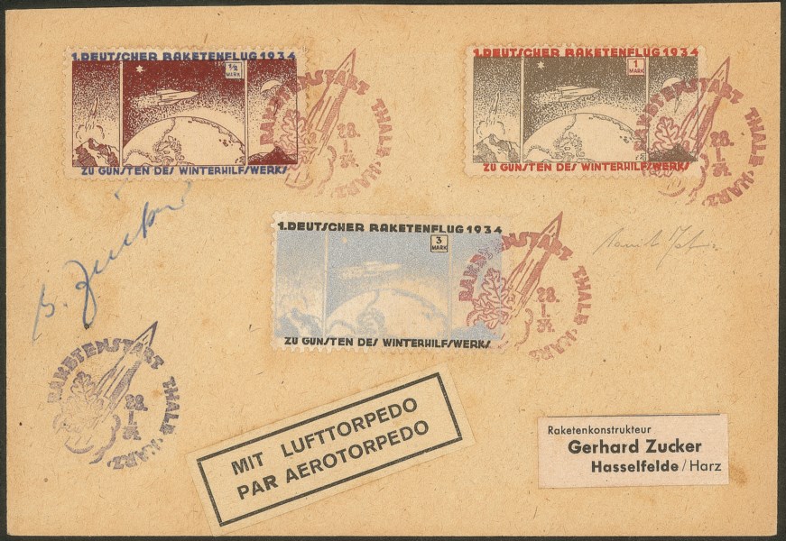 Europa e Oltremare - Germania - Esperimenti di Posta Razzo 28.1.34