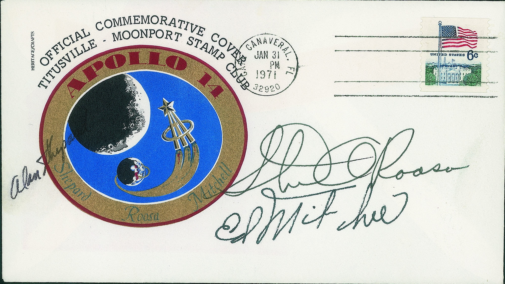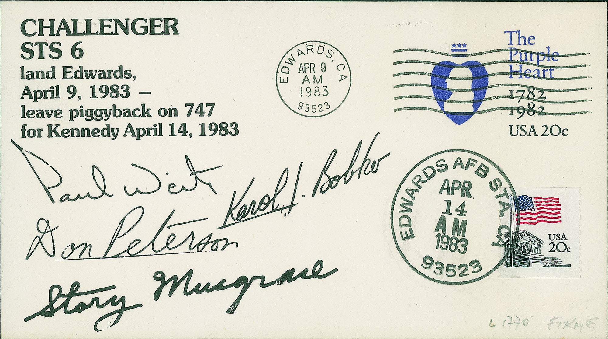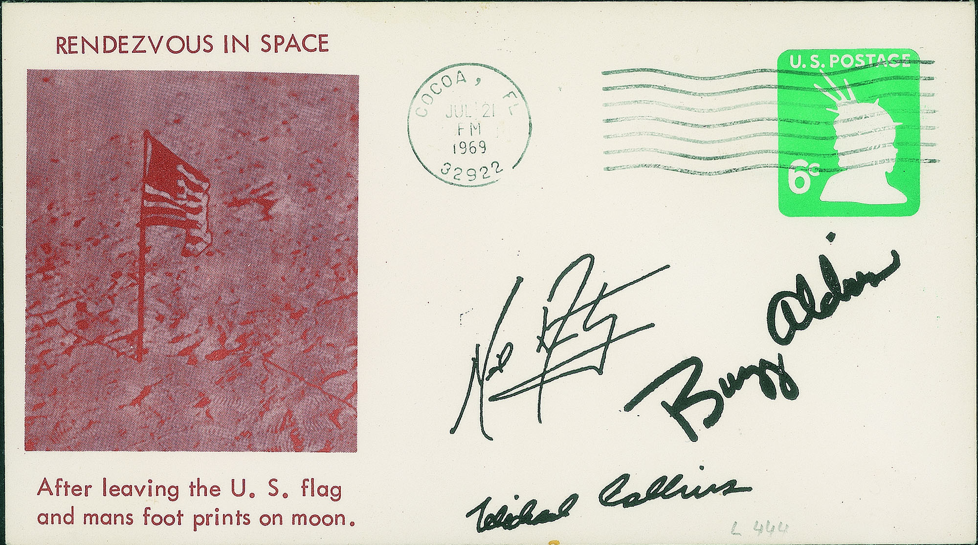 Quattro buste e una cartolina con firme autografe degli astronauti - buona qualità