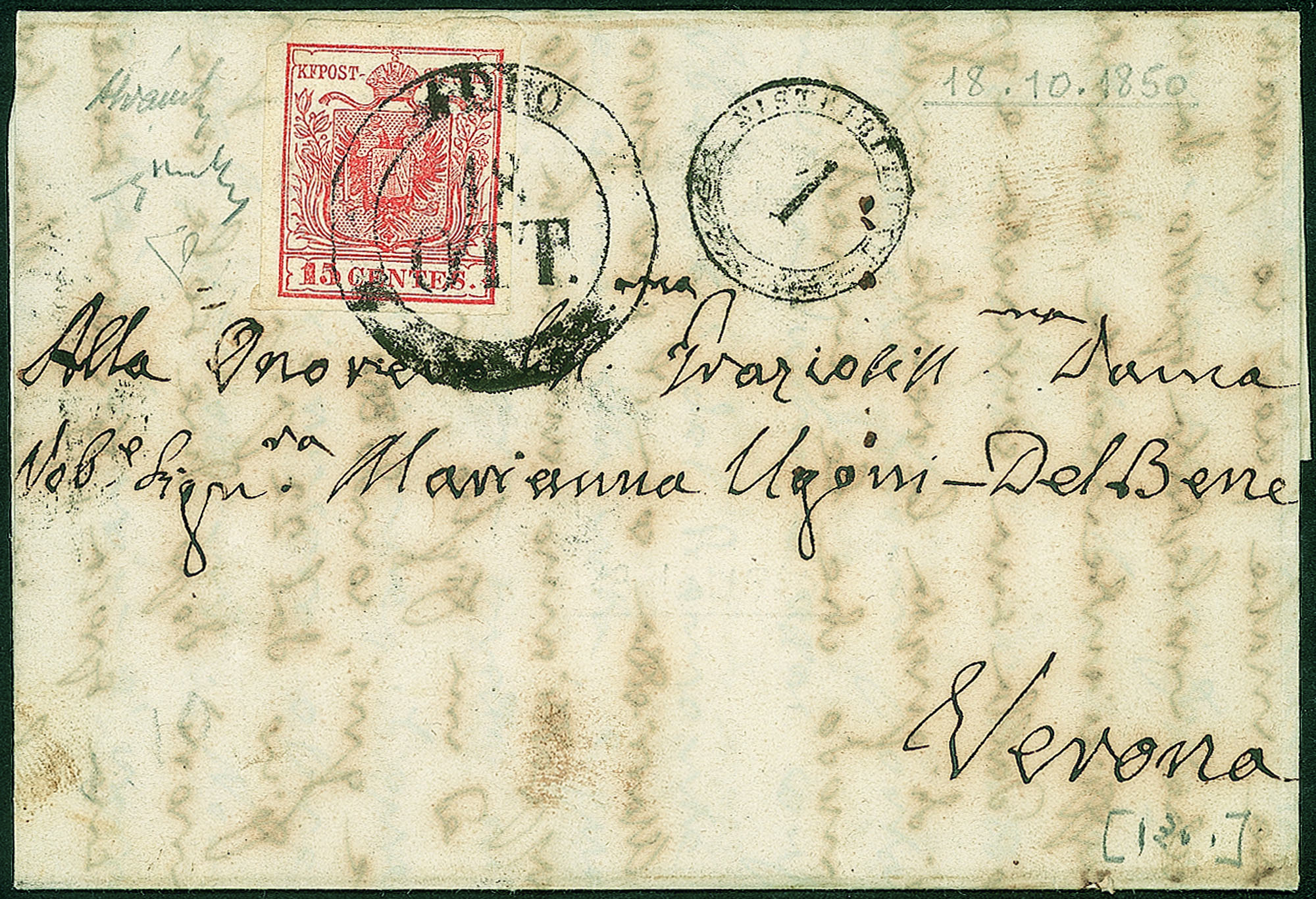 Affrancata con 15 cent (3a) molto ben marginato - ex coll. Provera - Chiavarello + Alianello + ED