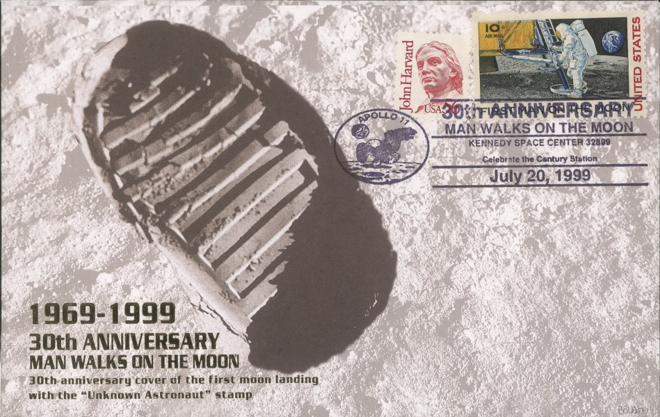30 Th Anniversario Uomo sulla Luna - busta affrancata con 10 cent Astronauta Ignoto + 56 cent annullati Kennedy Space Center 20.7.99 - busta 116 di 120 - cert. finanziario Bolaffi 60%