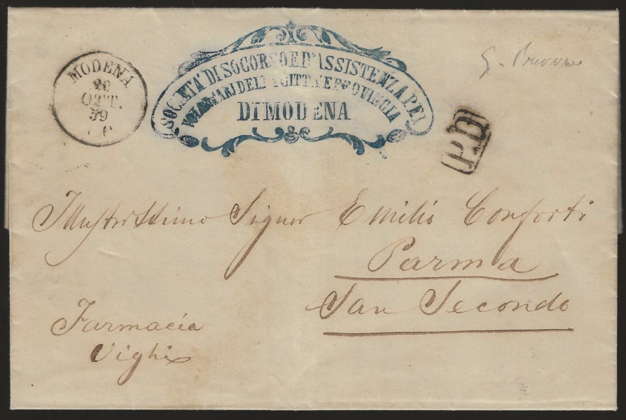 Antichi Stati Italiani - Modena - Governo Provvisorio - Governo Provvisorio - Lettera non affrancata da MODENA 20 OTTO.59