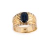 18kt yellow gold band ring with an oval-cut sapphire of ct 2.77 ca, embellished with two rows of brilliant-cut diamonds of ct 0.35 ca