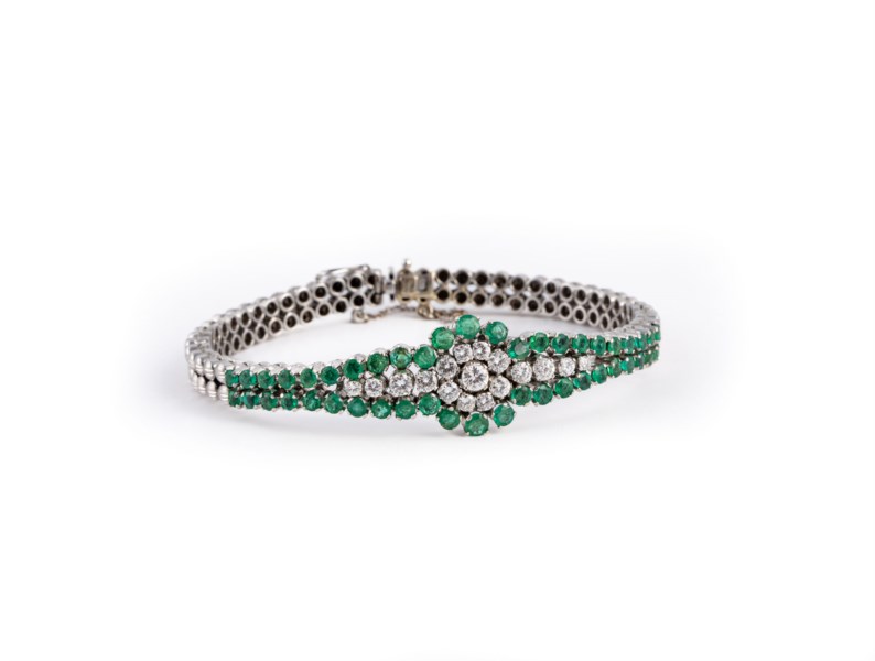 White gold bracelet with emerald and diamond