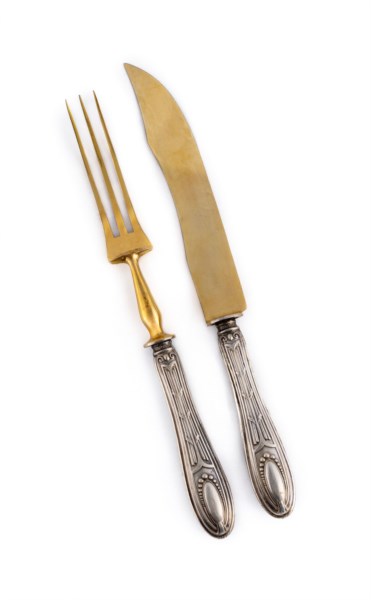Meat cutlery set, finely chiseled silver handles with ornamental motifs of vertical lines and oval patterns