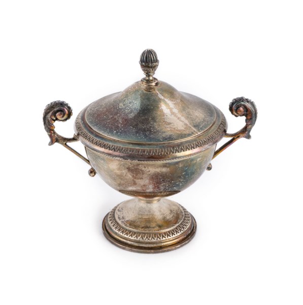 Two-handled sugar bowl with lid, Italy, 20th century
