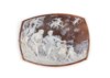 Brooch with cameo engraved on sardonic shell, rectangular shape with rounded corners, mounted on 18kt yellow gold depicting a scene inspired by the myth of the Rape of Europa