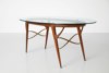 Sculptural table with brass inserts