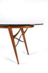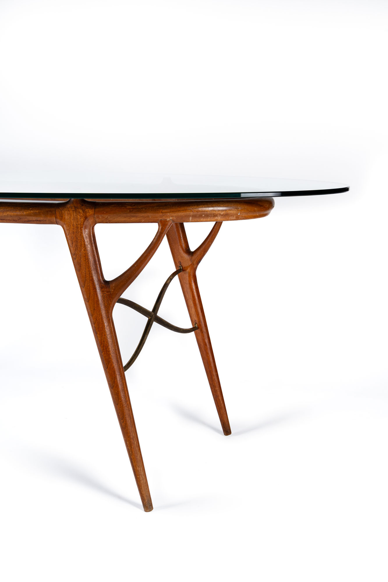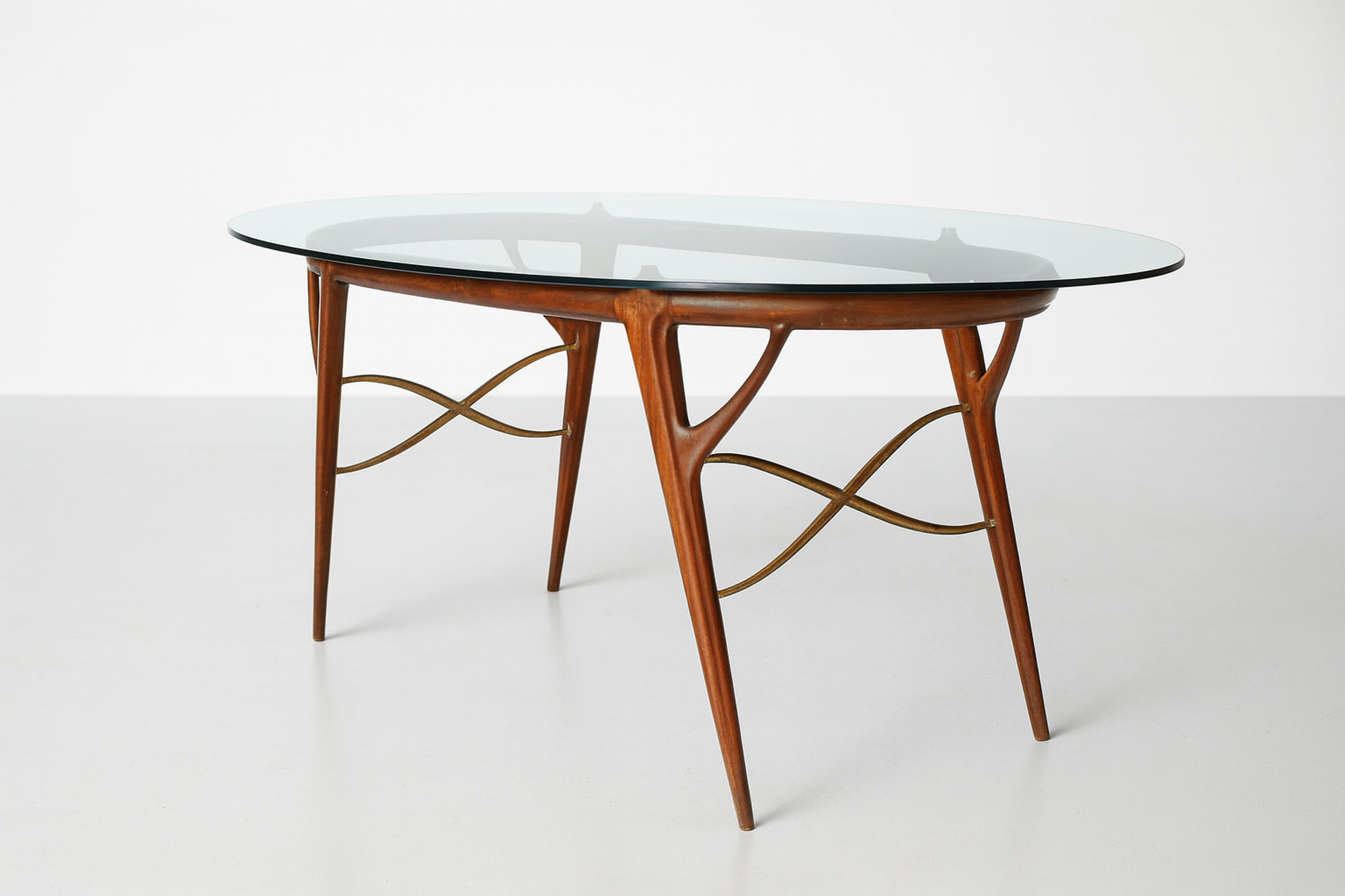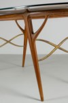 Table with wooden frame and cast brass details. Polished glass top, made in Italy, circa 1950