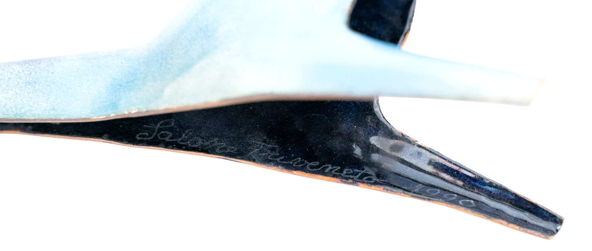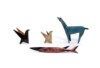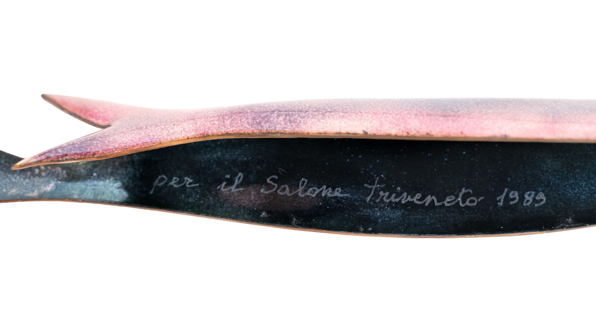 Polychrome enamelled copper set comprising two birds, a fish and a horse, Edition for the Salone del Mobile Triveneto, 1989-1990, manufactured by Smalti De Poli, Italy, 1990 circa