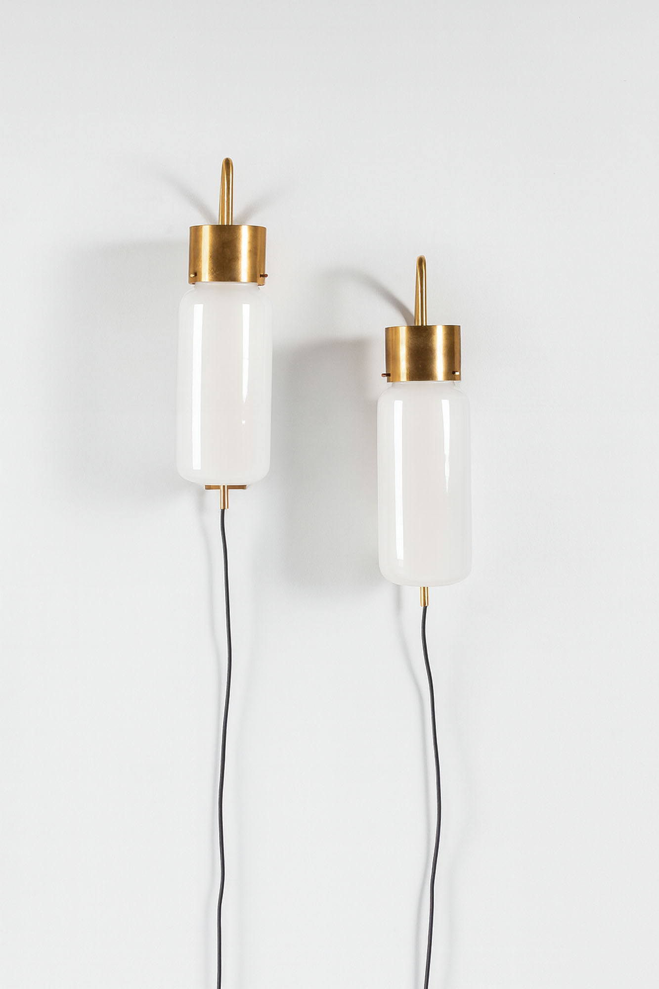 Wall lamps in brass and frosted glass, manufactured by Azucena, Italy, 1958 circa