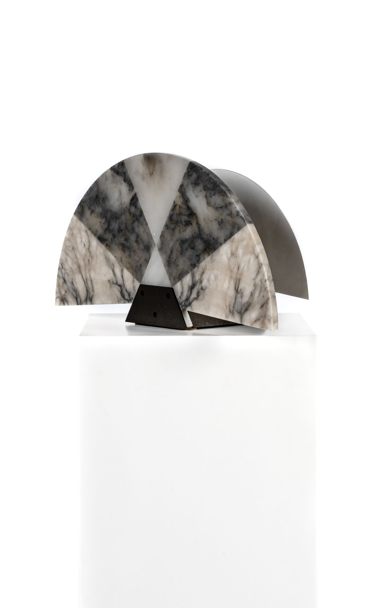 Alabaster and painted metal; curved fan-shaped diffuser, manufactured by Skipper - Pollux, Italy, 1980s