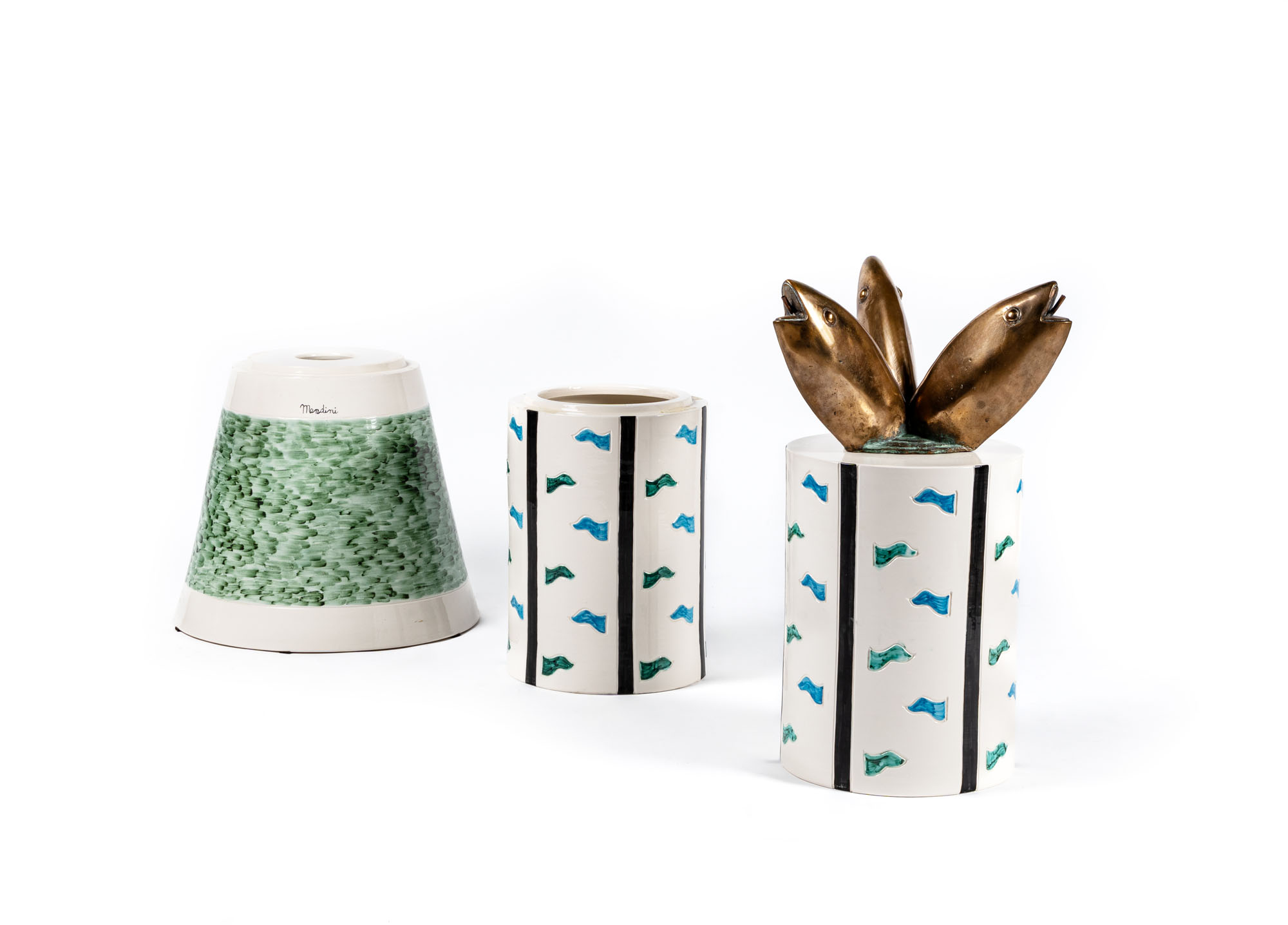 Modular sculpture in glazed ceramic with bronze insert, manufactured by Mirabili - Arte d'Abitare, Italy, 1986