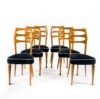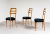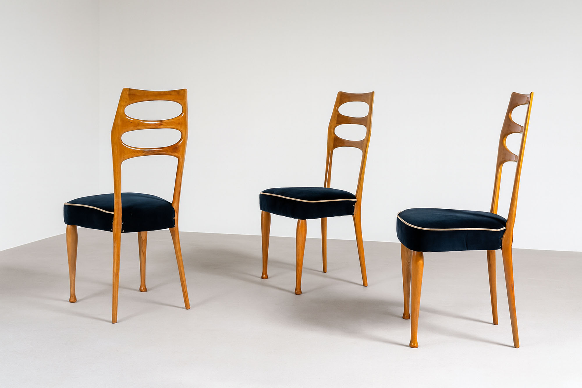Ash wood frame, blue velvet seat with contrasting ivory piping, made in Italy, circa 1950