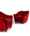 Red velvet upholstery and turned wooden legs, made in Italy, 1950s