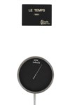 Installazione composta da un acrilico su tavola e orologio su piedistallo in acciaio