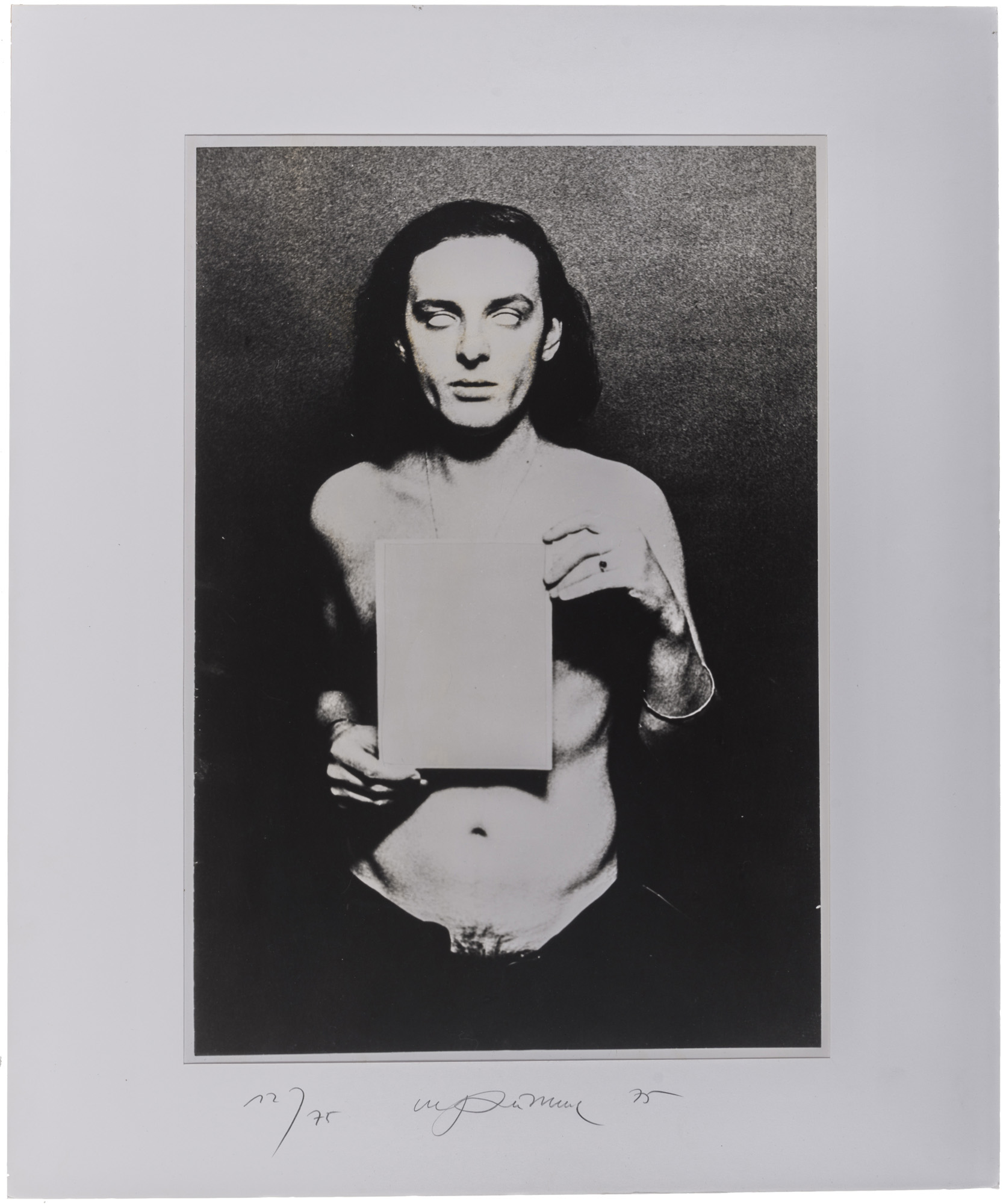 Cartella contenente 36 stampe alla gelatina ai sali d'argento applicate su cartoncino e passe-partout, es. 12/75, Edizione a cura di Pari & Dispari, Rosanna Chiessi e Peppe Morra, in collaborazione con Francesco Conz, Reggio Emilia