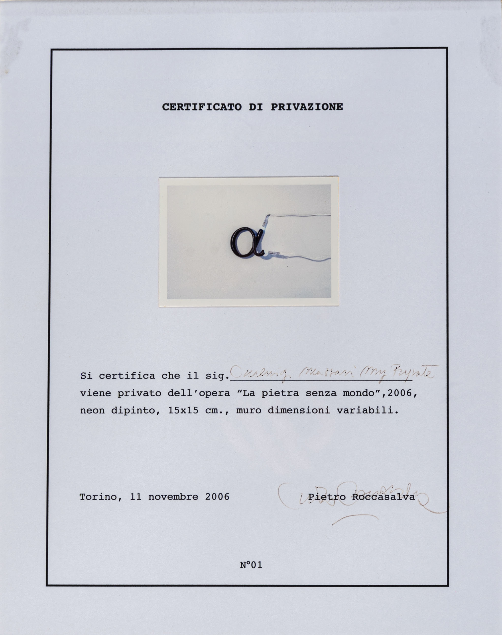 Certificato di privazione n. 1 dell'opera La pietra senza mondo