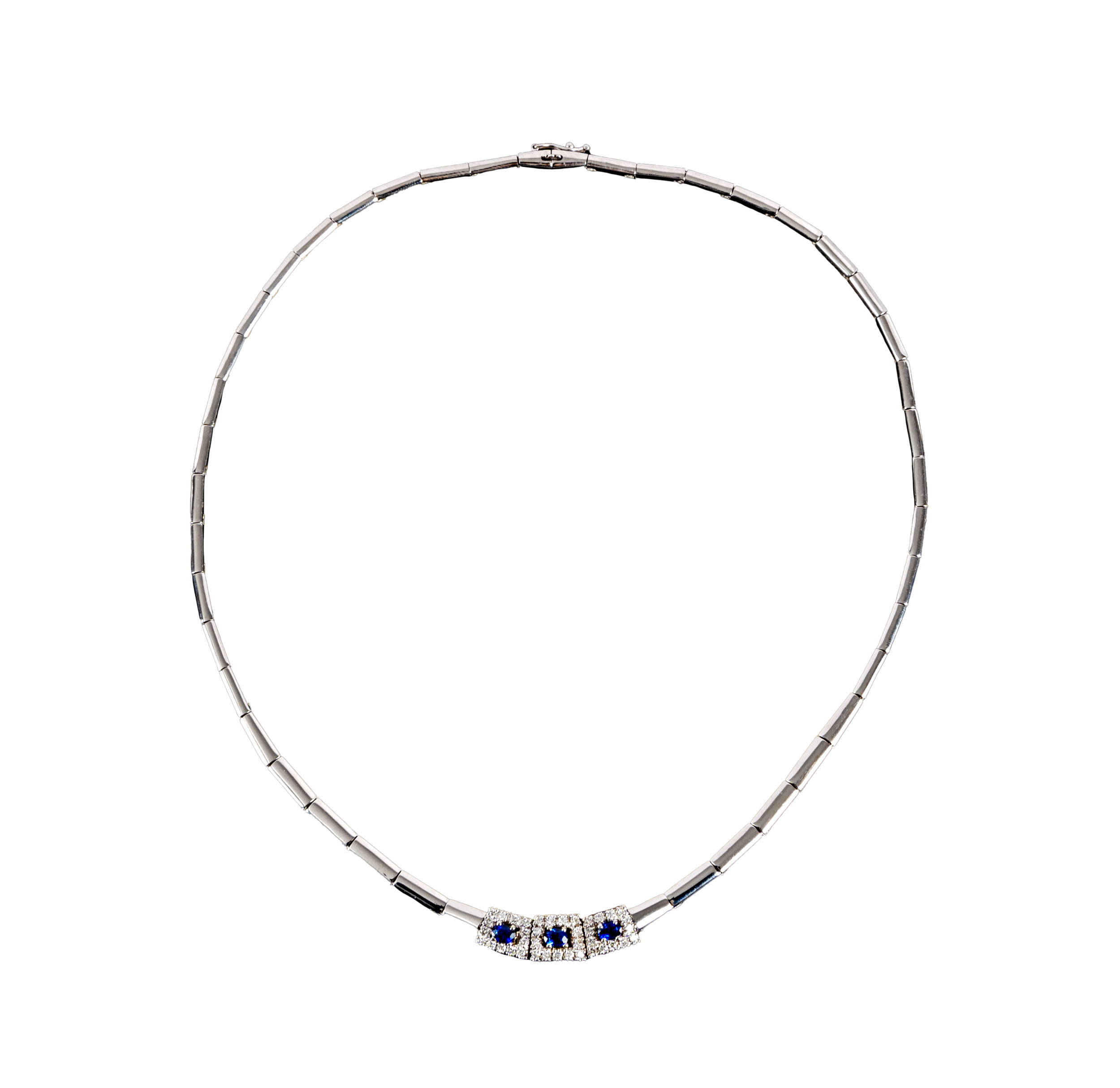 Collana in oro bianco 18kt con zaffiri e diamanti