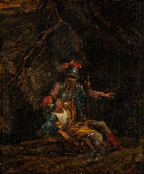 Scuola italiana del secolo XVII, cerchia di Salvator Rosa - Due armigeri