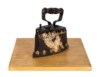 Tecnica mista e ferro da stiro entro teca in plexiglas