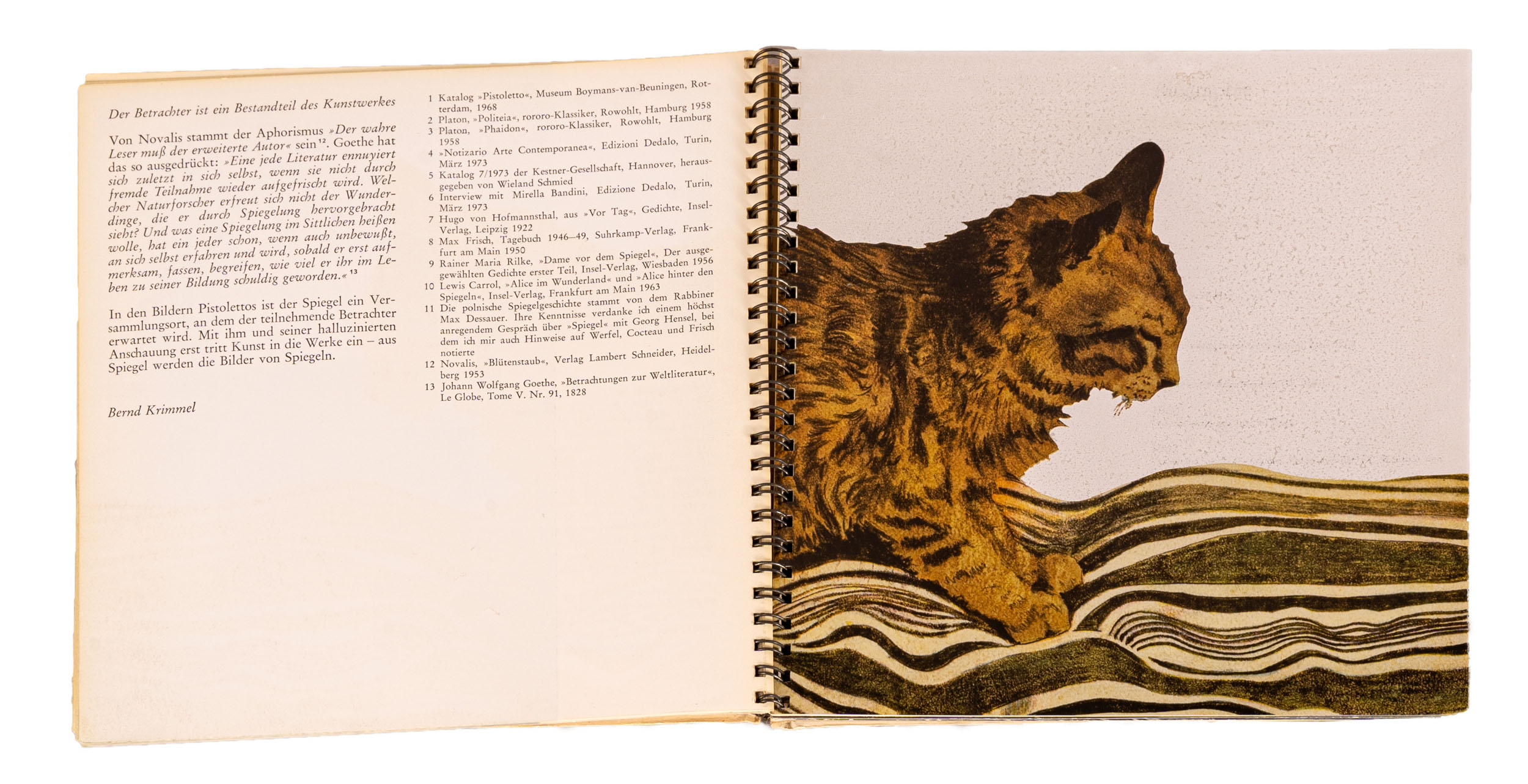 Catalogo della mostra tenutasi presso la Mathildenhöhe di Darmstadt dal 27 aprile al 26 maggio 1974, rilegato ad anelli e contenente 11 serigrafie su carta lucida argentata a specchio, di cui una a doppia pagina