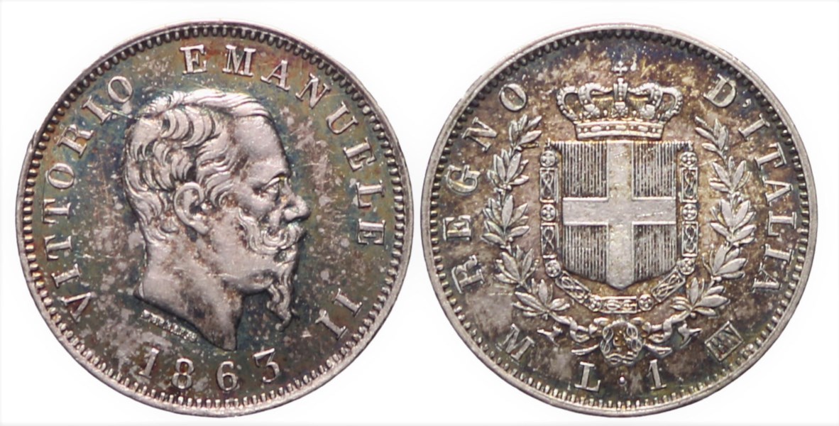 VITTORIO EMANUELE II, Re d'Italia (1861-1878) - 1 lira 1863, Milano