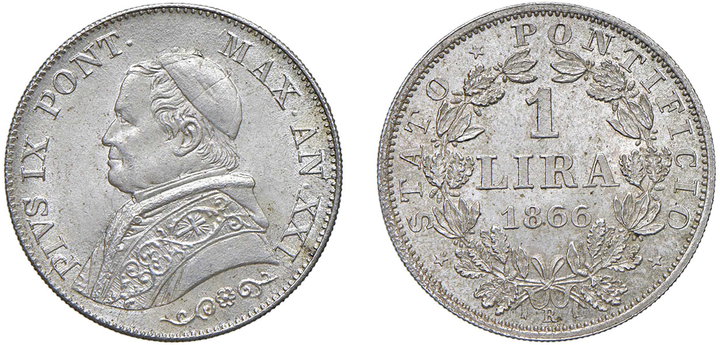 PIO IX (1846-1870) - 1 lira 1866, busto medio