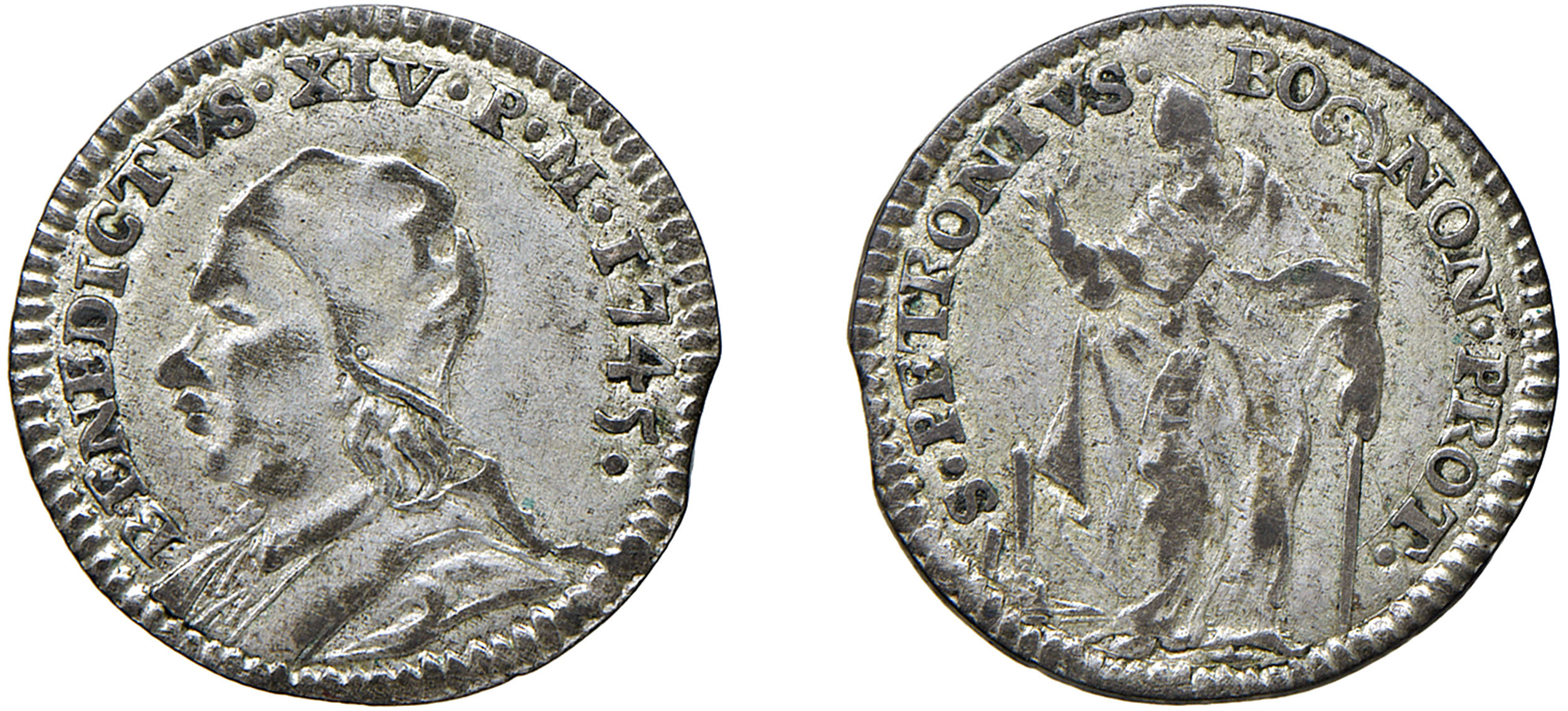 BENEDETTO XIV (1740-1758) - Muraiola da 4 bolognini 1745, Bologna