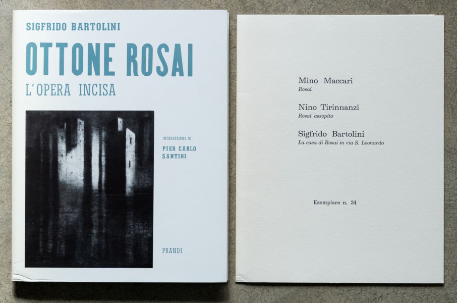 Catalogo monografico illustrato entro custodia, es. 34/100, contenente tre acqueforti di Mino Maccari, Nino Tirinnanzi e Sigfrido Bartolini, firmate a matita e numerate