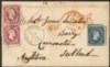 Lettera affrancata per 1 lira diretta in Scozia con 20 cent azzurro + coppia verticale del 40 cent rosa carminio bordo di foglio a destra (pos. 10 e 15 del foglio interspazio di gruppo) da Torre Luserna 14 LUG 52 per Carnoustie Scozia