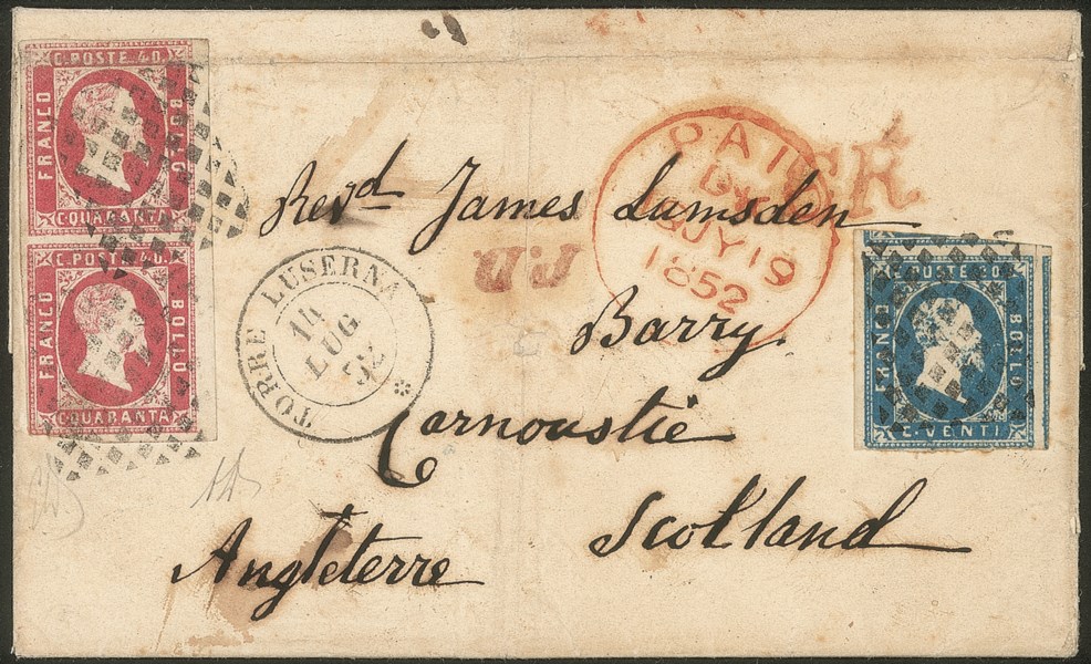Antichi Stati Italiani - Sardegna - Lettera (pos. 10 e 15 del foglio interspazio di gruppo)