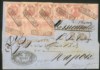 Assicurata da Rodi per Napoli affrancata con quattro esemplari del 1 grano rosa chiaro I tavola + cinque esemplari del 2 grana rosa brunastro I tavola (3 + 5c cat.25000+) - sicuramente la lettera più importante con il raro annullo ovoidale ornato di Rodi - cert. Colla