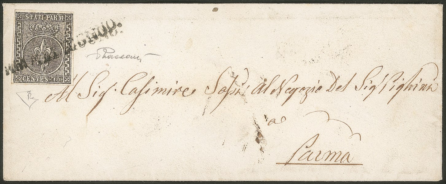 Antichi Stati Italiani - Parma - Lettera per città affrancata con c.10 nero isolato