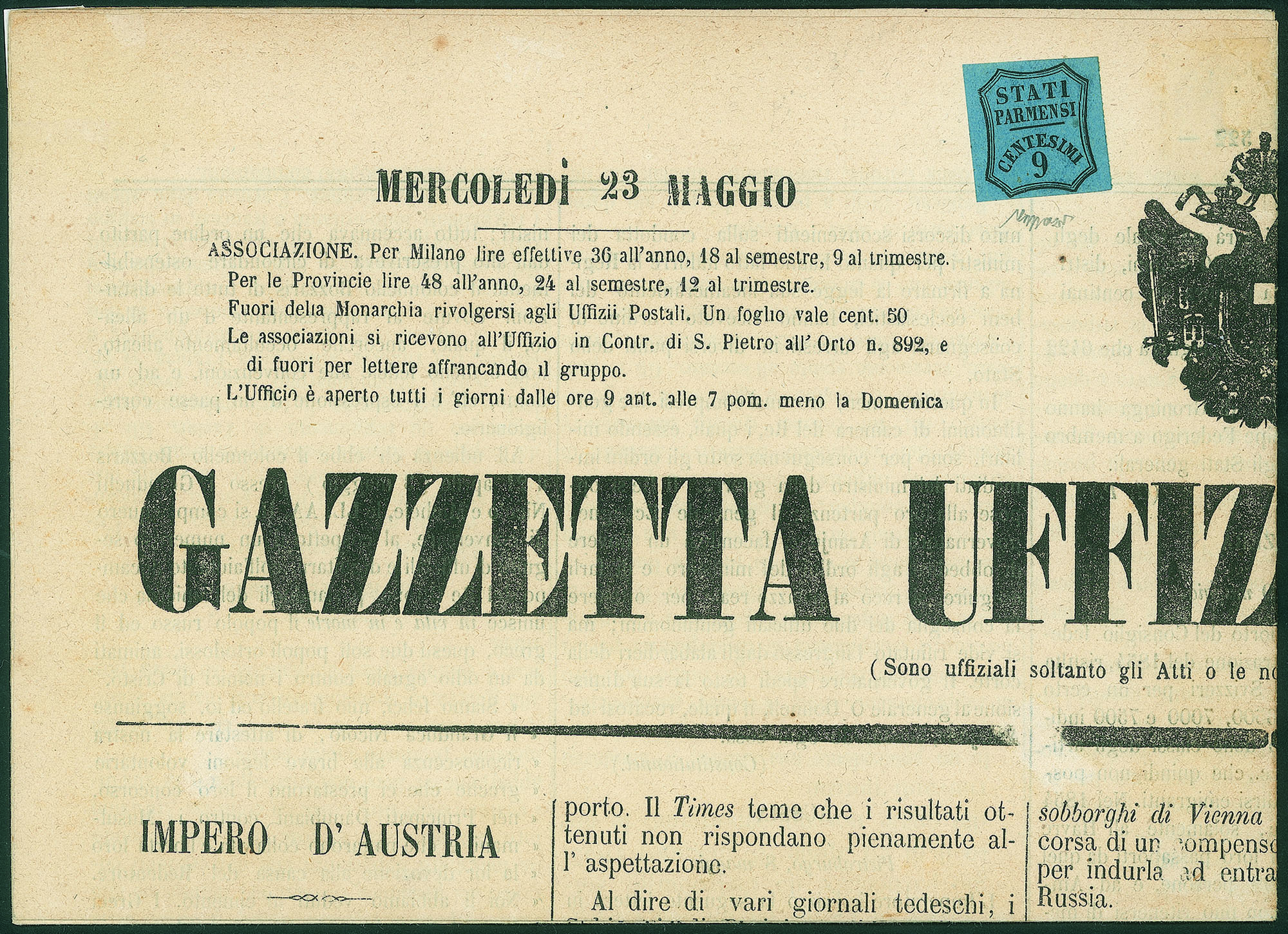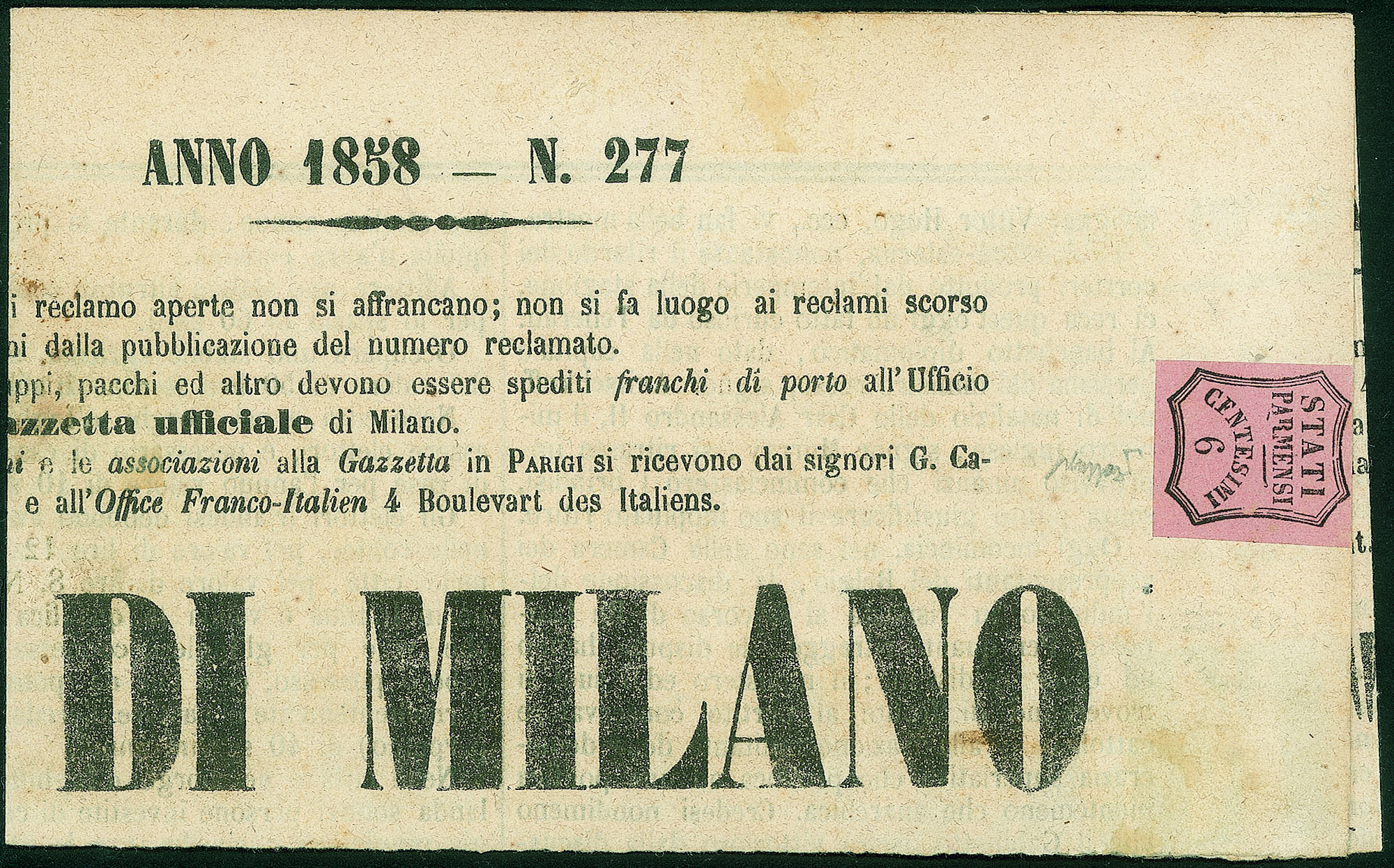 Antichi Stati Italiani - Parma - Insieme di due giornali con SEGNATASSE per Gazzette estere
