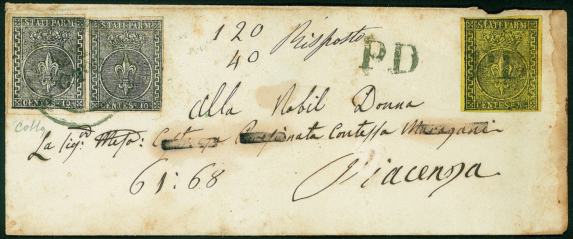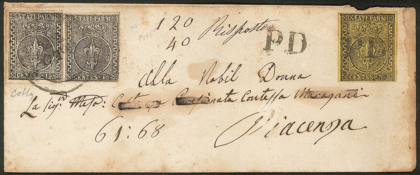 Antichi Stati Italiani - Parma - Lettera con due esemplari c.10 nero