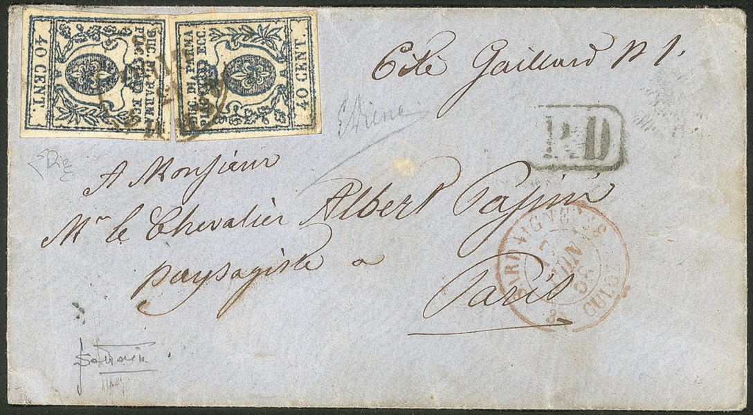 Antichi Stati Italiani - Parma - Lettera per la Francia con due esemplari c.40 azzurro