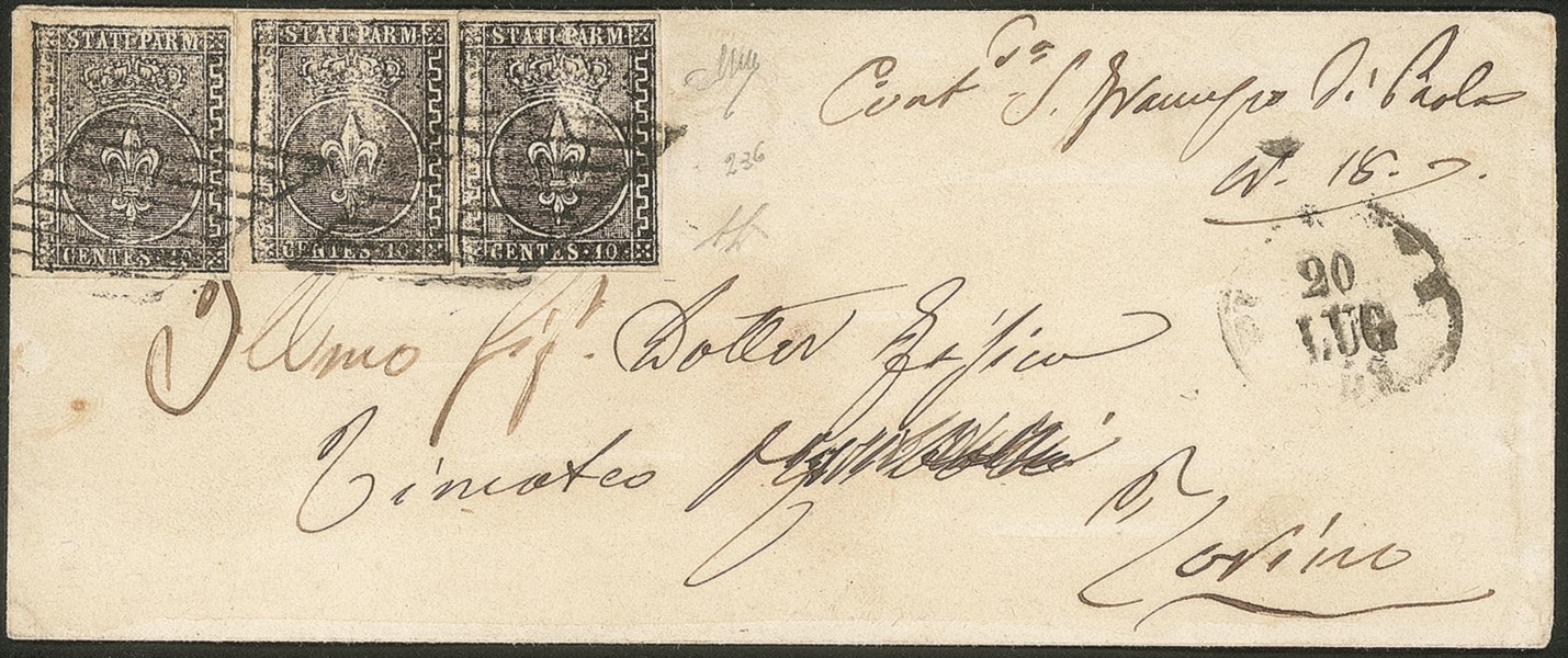 Antichi Stati Italiani - Parma - Lettera con striscia di tre c.10 nero