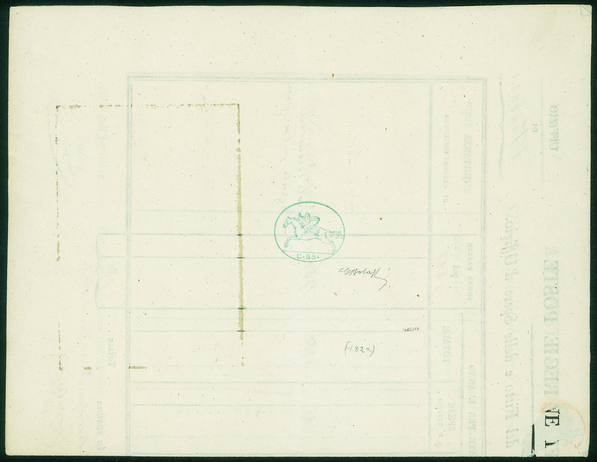 Su foglio di carta postale usato in epoca successiva come carta intestata per corrispondenza d'ufficio - Chiavari 1822 - cert. Bolaffi