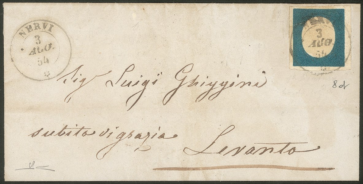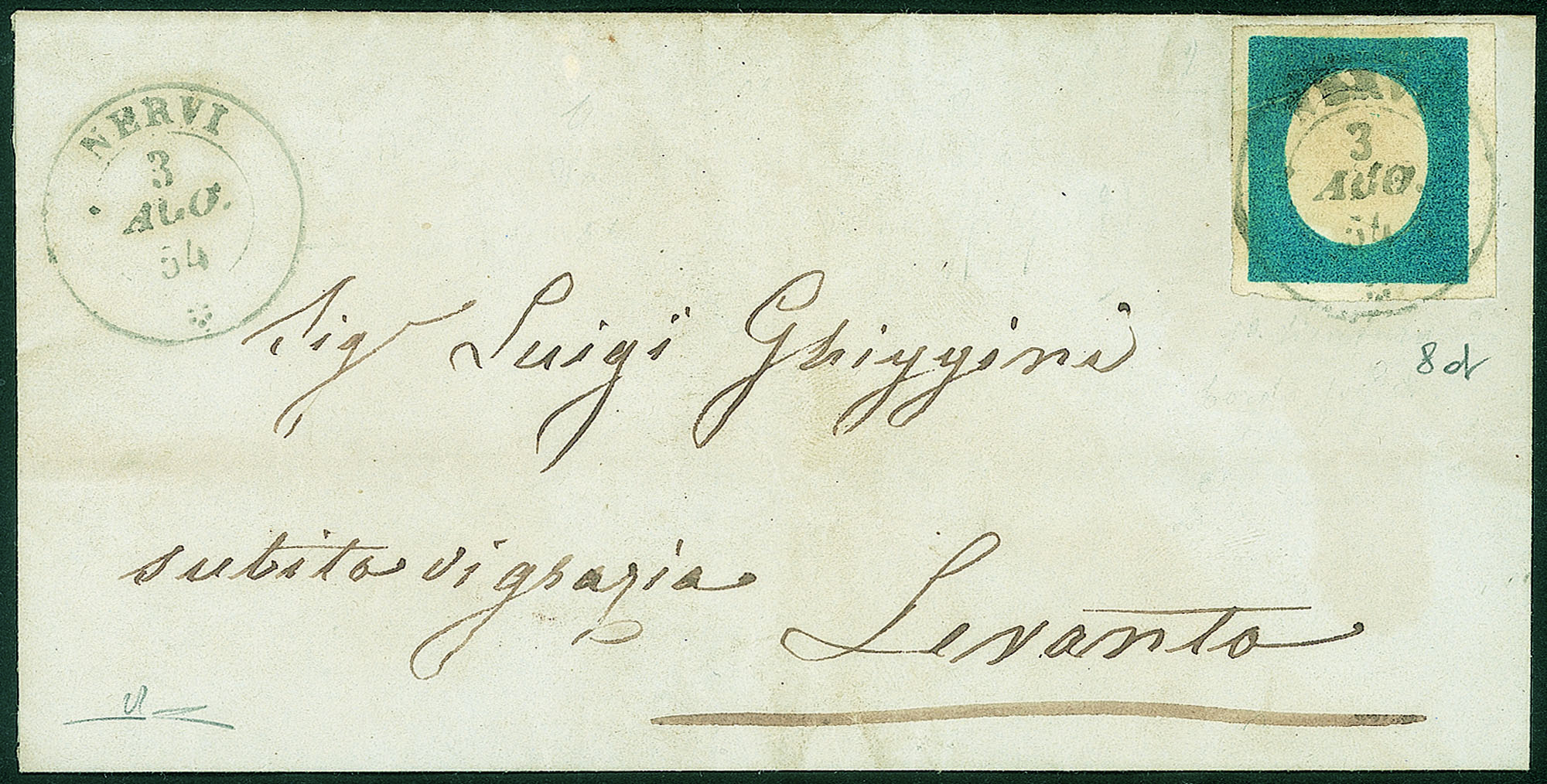 Antichi Stati Italiani - Sardegna - Busta affrancata con 20 cent azzurro verdastro (8d)