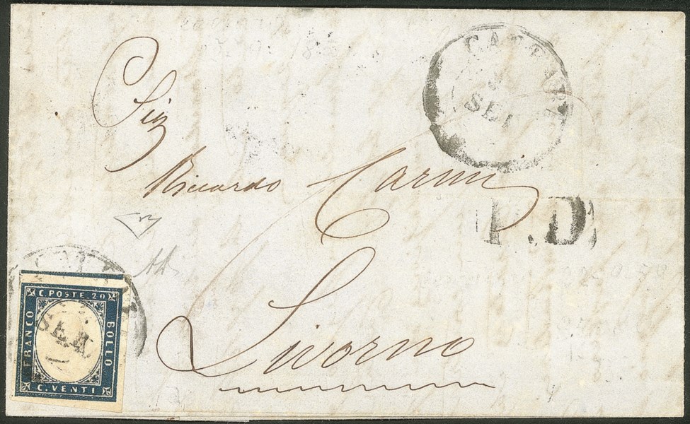 Antichi Stati Italiani - Modena - Lettera affrancata con 20 cent azzurro scuro (Sardegna - C3)